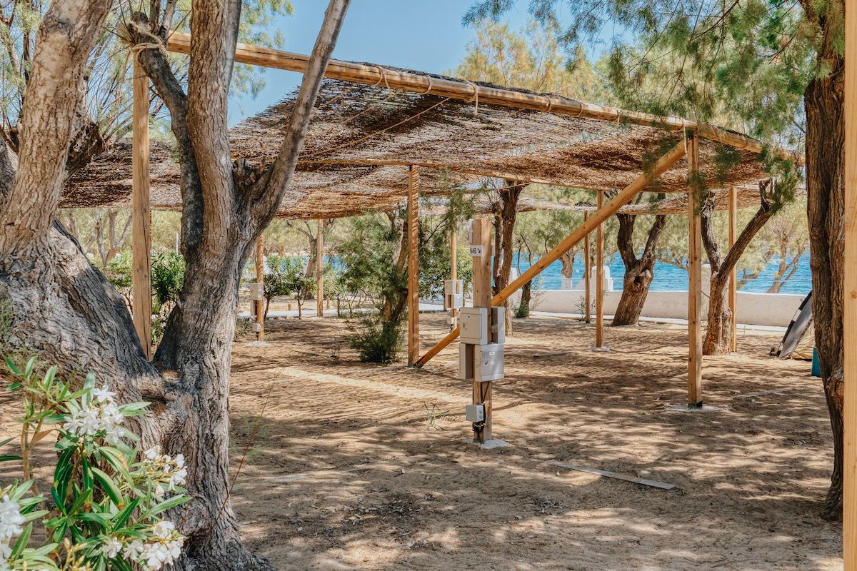 The camping site features a restaurant with a menu listing several dishes, a cafe. Beach umbrellas and sunbeds are available free of charge on Livadakia beach right in front of the camping.