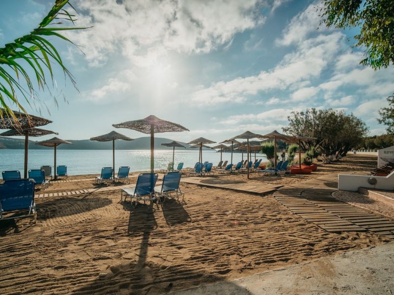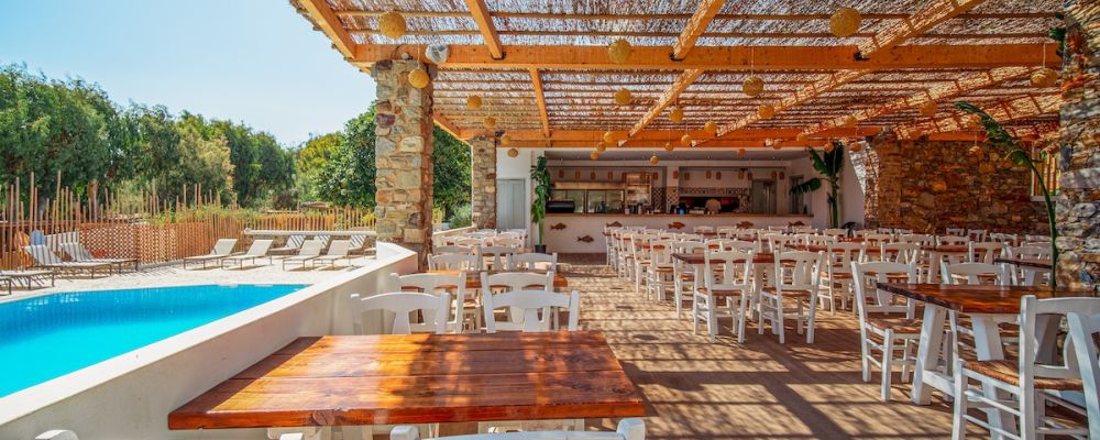 All the bungalows and camping site are sea front, and there is also pool & restaurant inside the complex and the all day bar located on the Resort beach.